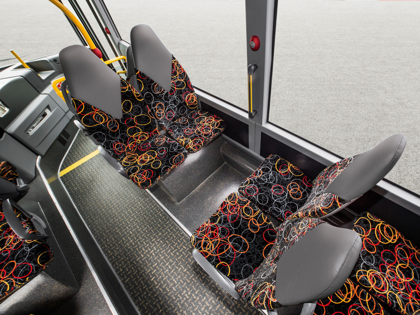Your passengers will be delighted with the clear, spacious interior and the comfortable suspension of the Citaro LE Ü. The overland seats, which are arranged uniformly in the rear area in the direction of travel, offer pleasant seating comfort also for extended journeys. The access in the rear area is also extremely easily accessible thanks to the two low steps, as well as providing good passenger flow.