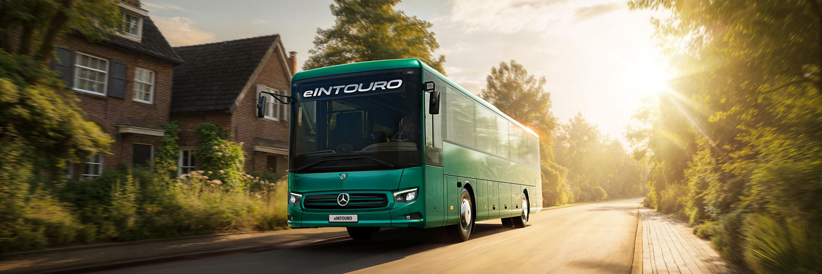 The new Mercedes-Benz, battery-electric eIntouro: an emission-free solution for shuttles and school buses, intercity routes and short trips.