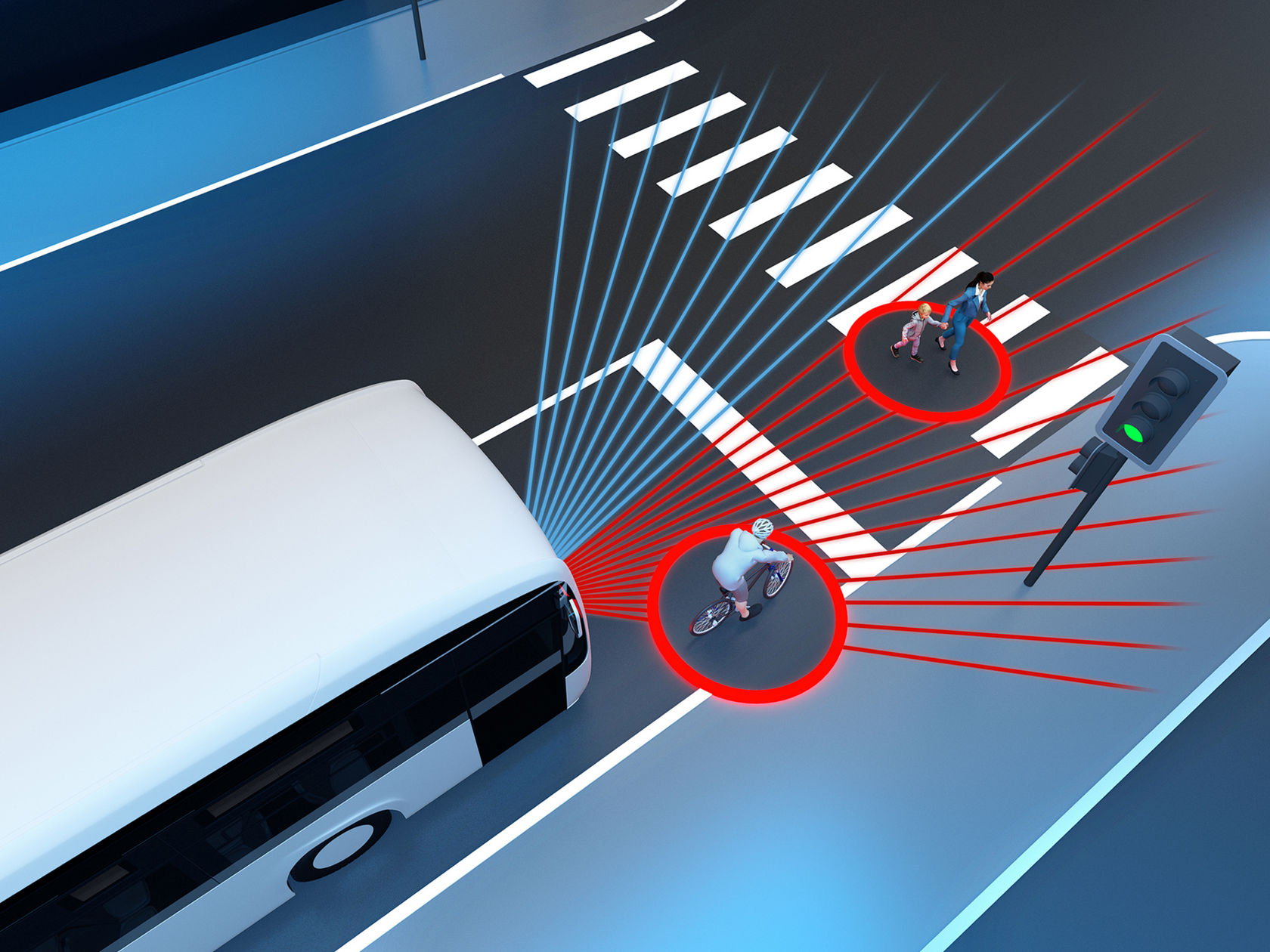 The ABA 6 Plus emergency braking system assists the driver by automatically initiating emergency braking if there is a risk of a rear-impact collision with vehicles in front or stationary obstacles. It can also detect moving or stationary persons and cyclists in front of the vehicle. The system can respond with an audible and visual warning as well as automatic partial or full-stop braking.